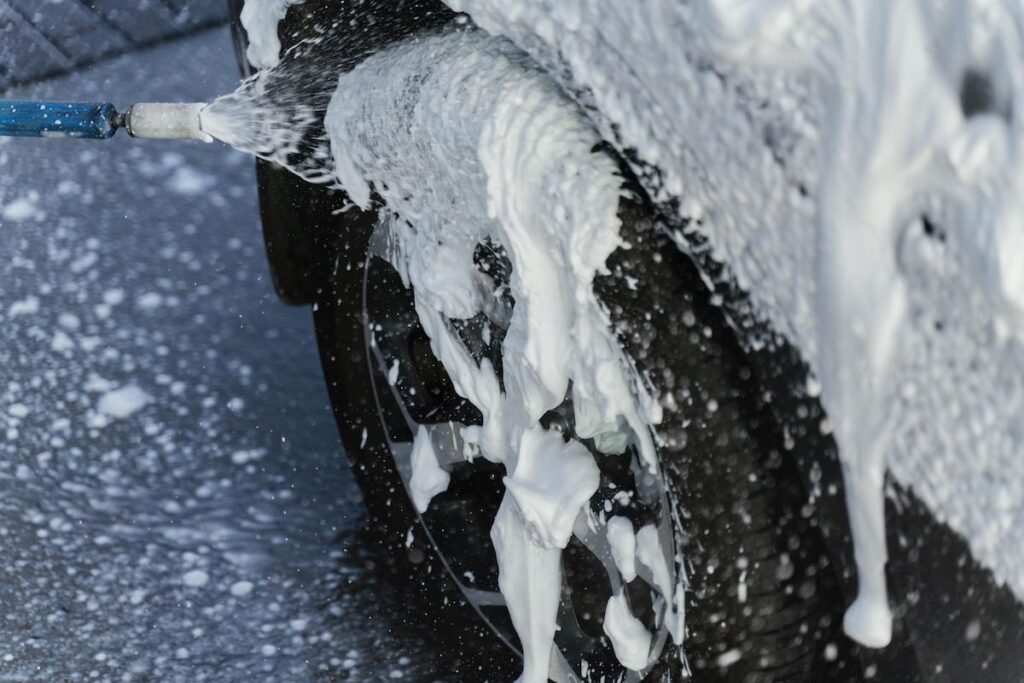 - Foam It Up: A foam cannon or foam gun is a professional detailer’s best friend. Pre-soaking your car with a thick layer of foam lifts away dirt, minimizing the chances of scratching the paint during the washing process.